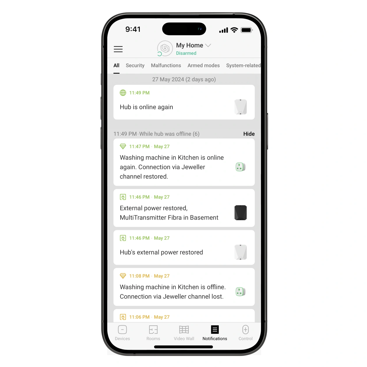 Armez, désarmez et contrôlez votre système Ajax directement depuis votre smartphone.